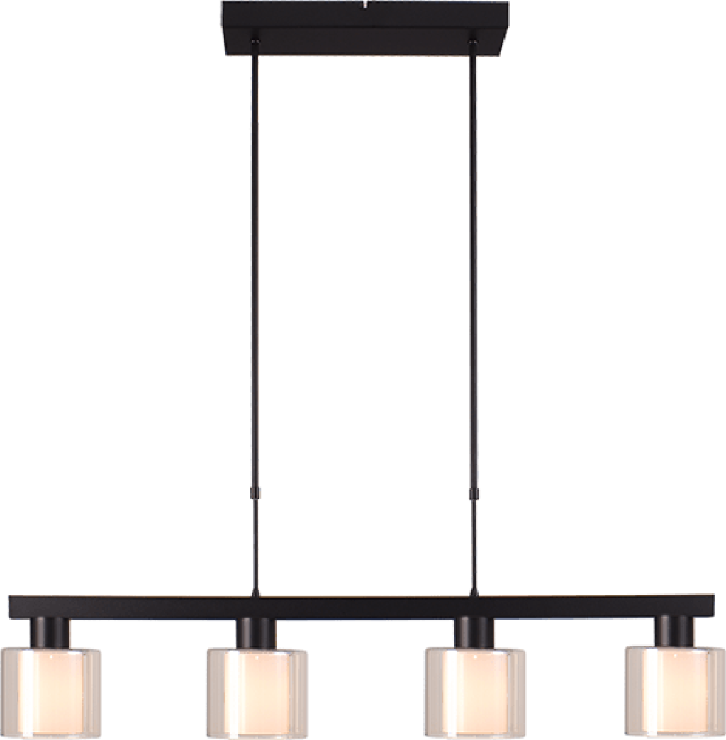 De Lauria 4-lichts hanglamp in mat zwart combineert industriële flair met moderne eenvoud. De vier cilindrische lampenkappen en de robuuste matzwarte afwerking zorgen voor een krachtige, verfijnde uitstraling. Met dimbare E27-fittingen biedt deze lamp zowel functionele verlichting als een sfeervol accent voor elke ruimte.