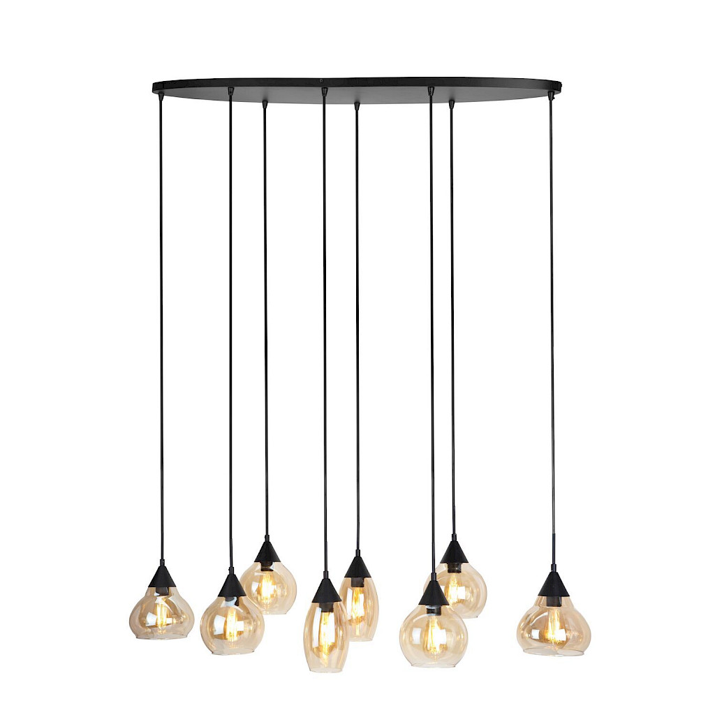 Uitgevoerd in de kleur zwart met amber glas, met ovale plafondplaat. Geschikt voor maximaal 8x40 watt. Fitting: E27 (grote fitting). Exclusief lichtbron (gloeilamp/spaarlamp/ledlamp).