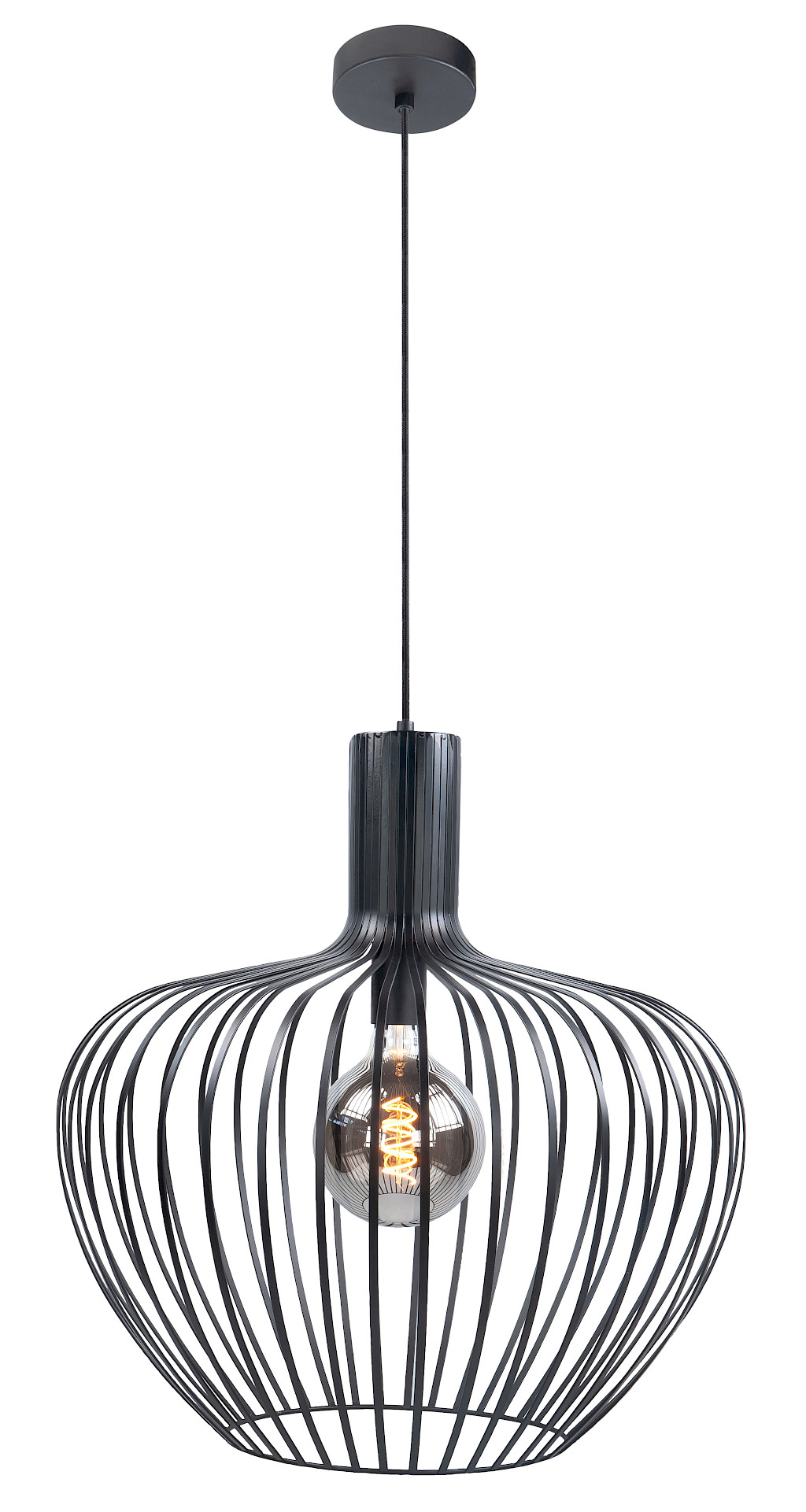 Hanglamp Mela zwart met 1 lichtpunt en Ø 50 cm. Deze lamp wordt geleverd zonder lichtbron(nen). Als lichtbron kan zowel een gloei- als LED lamp worden gebruikt. Dimbaar via externe dimmer.