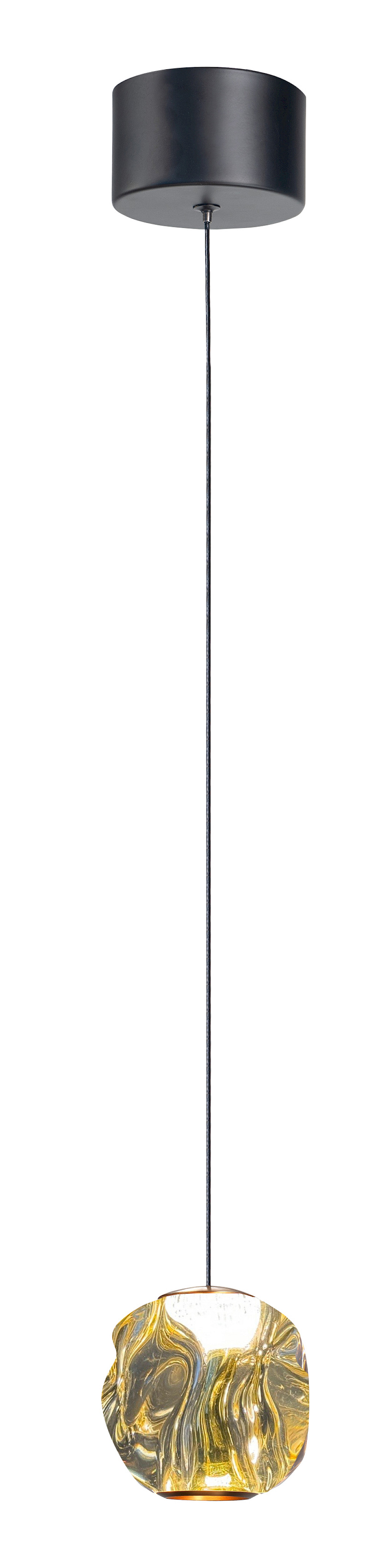 Hanglamp Melina zwart + messing + amber acryl met 1 lichtpunt en Ø 10 cm. Deze lamp wordt compleet geleverd met lichtbron(nen). Als lichtbron kan alleen een LED lamp worden gebruikt. Dimbaar via externe dimmer.