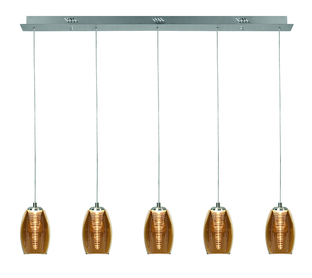 Hanglamp Nebula recht nikkel + amber glas 5 lichtpunten Via een persoonlijk gesprek worden dan alle wensen besproken.