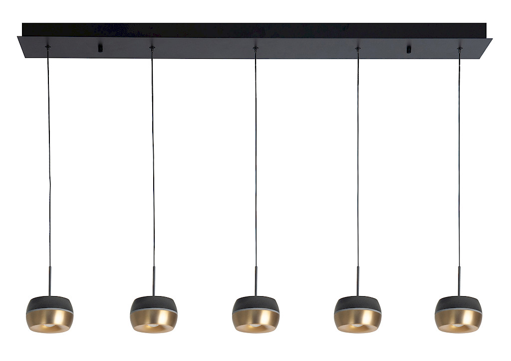 Hanglamp Nova recht zwart + goud 5 lichtpunten
