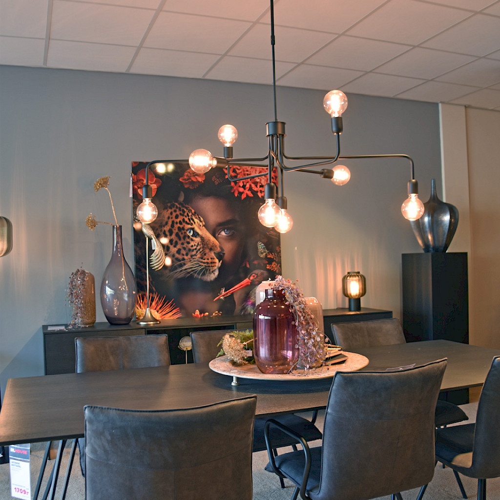 Hanglamp Octo is een echte blikvanger. Deze bijzondere lamp met 8 lichtpunten valt direct op.