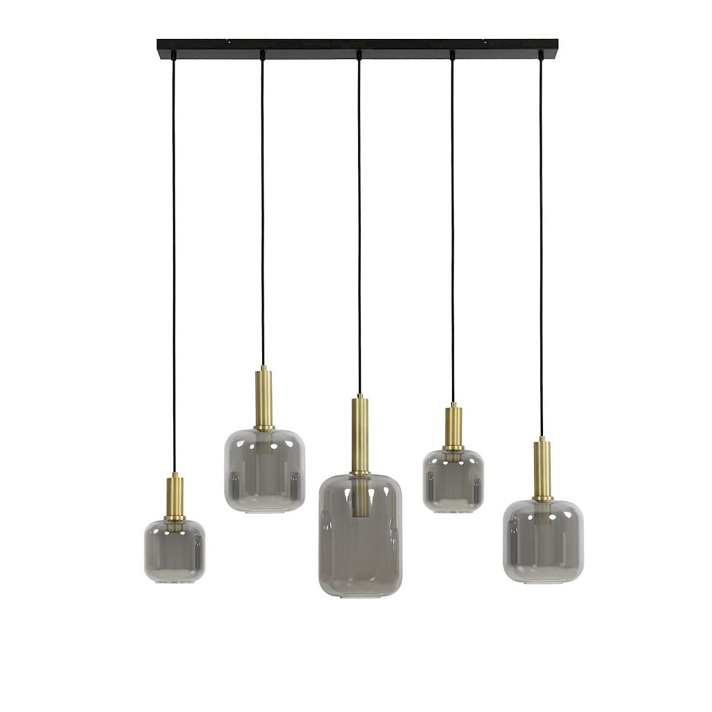 Hanglamp Peglio glas smoke antiek brons 5-lichts