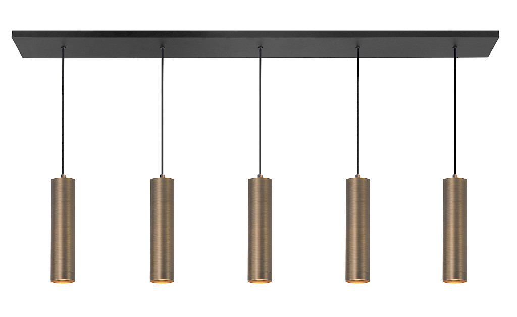 Hanglamp Perugia recht zwart + brons 5 lichtpunten