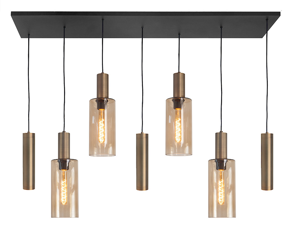 Hanglamp Perugia zwart + brons + bruin glas 7 lichtpunten