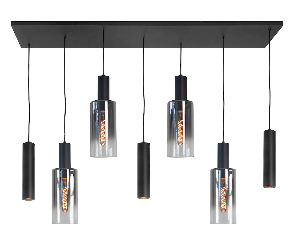 Hanglamp Perugia zwart + smoke glas 7 lichtpunten
