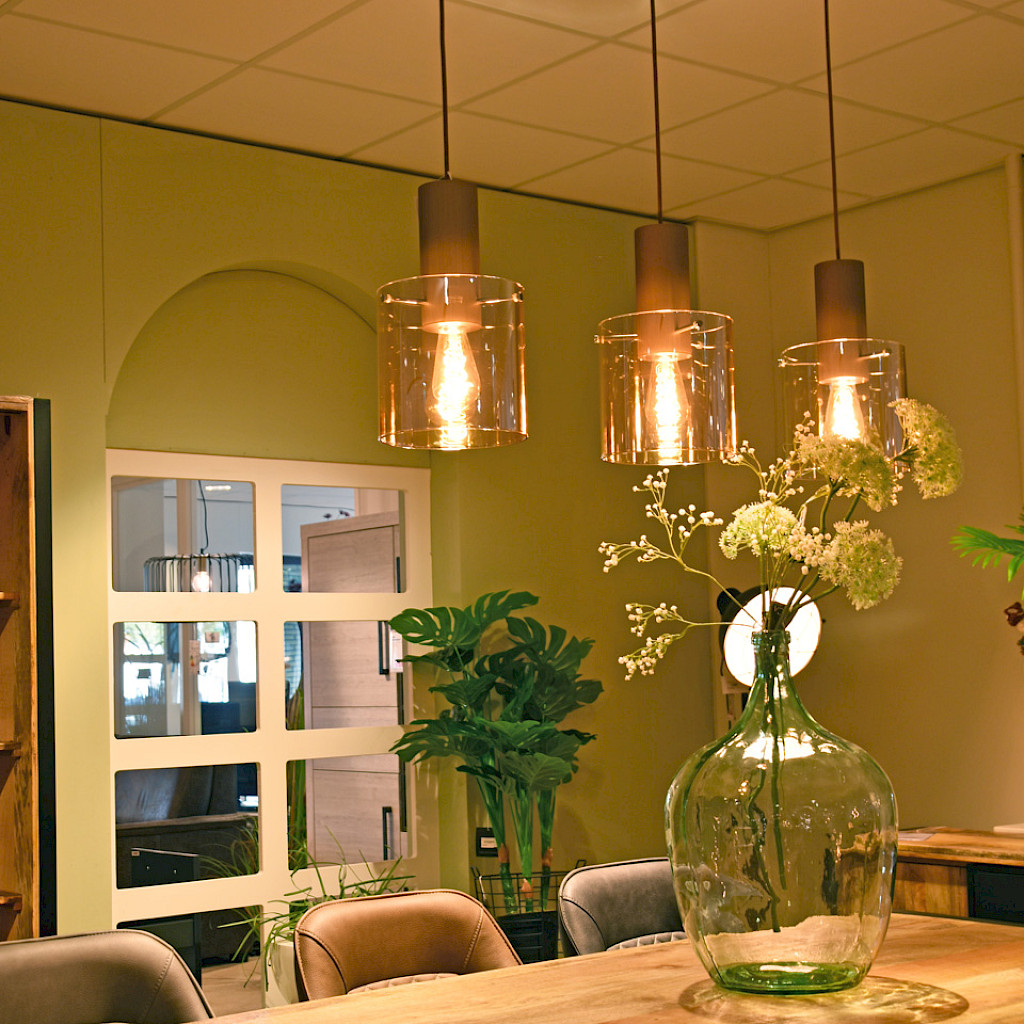 Hanglamp Toledo heeft een warme koper kleur. Een lamp met drie lichtpunten. De koper kleur zorgt ervoor dat de lamp een warm licht verspreid.