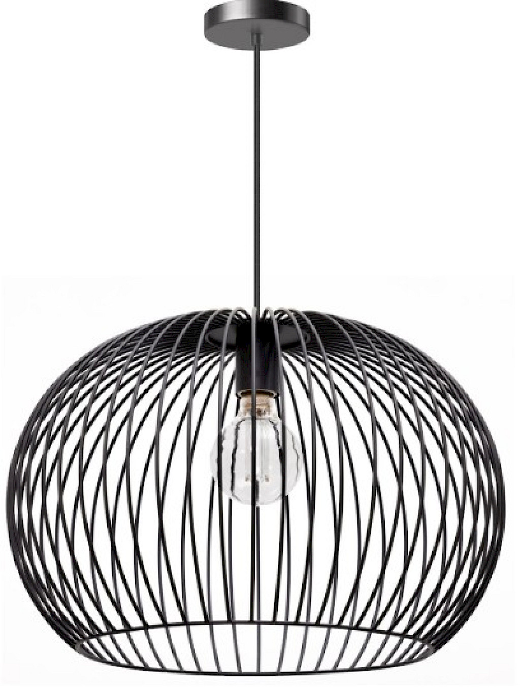 Een sfeervolle hanglamp die prima geschikt is voor een woon- en slaapkamer, hal of keuken. De kap bestaat uit metalen draden die bovenin samenkomen tot een kokervormige fitting. Het snoer van de hanglamp is gemakkelijk in hoogte te verstellen. Hiermee maakt u de lamp passend naar wens. De hanglamp wordt zonder lichtbron geleverd. Door de open constructie van de hanglamp bepaald de lichtbron veelal de sfeer. Eén van onze 3-standen lichtbronnen zou dan ook een mooie keus zijn om deze hanglamp mee af te maken.