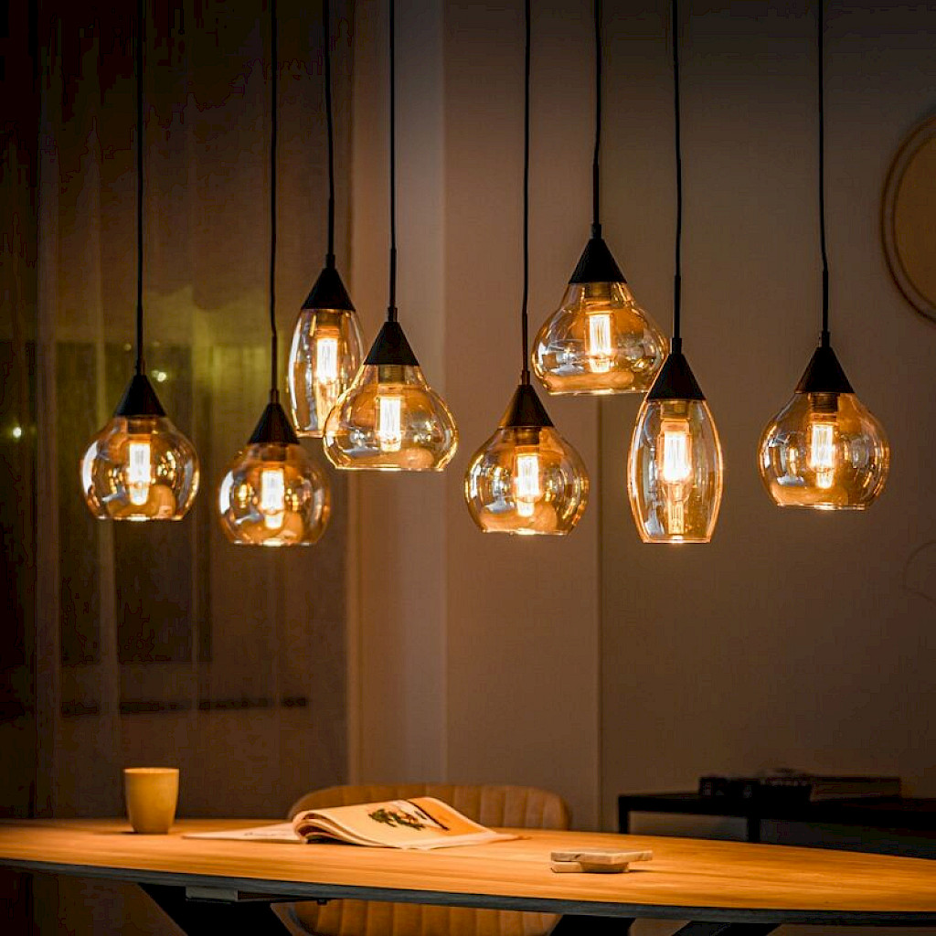 Hanglamp zwart amber glas 8-lichts - Lungo