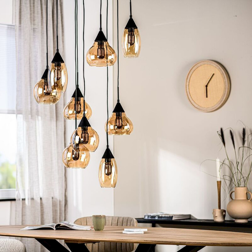 Hanglamp zwart amber glas 9-lichts - Lungo