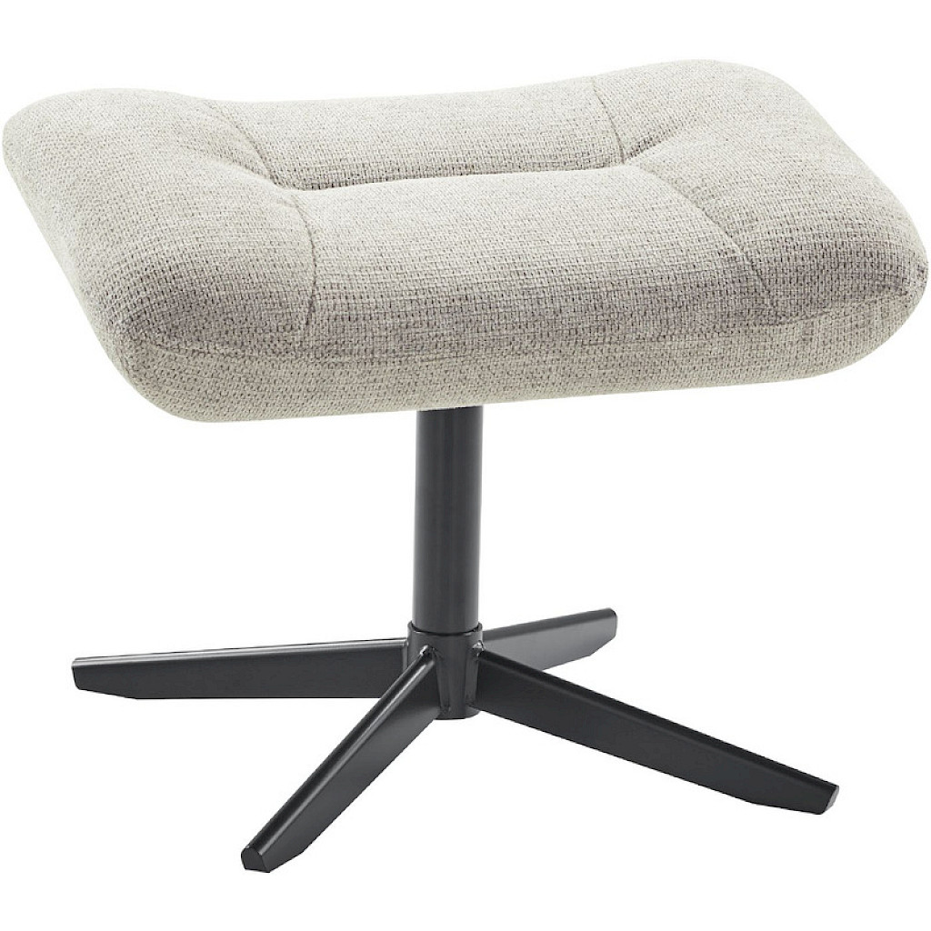 Model Mantuia heeft een uitstekend zitcomfort. De hocker is uitgevoerd in een gemêleerde weefstof in een licht meerkleurige kwaliteit. De stof heeft een wat grovere structuur, maar heeft een erg zachte touch. De zwart metalen vierteens voet geeft de hcoker een elegante uitstraling.