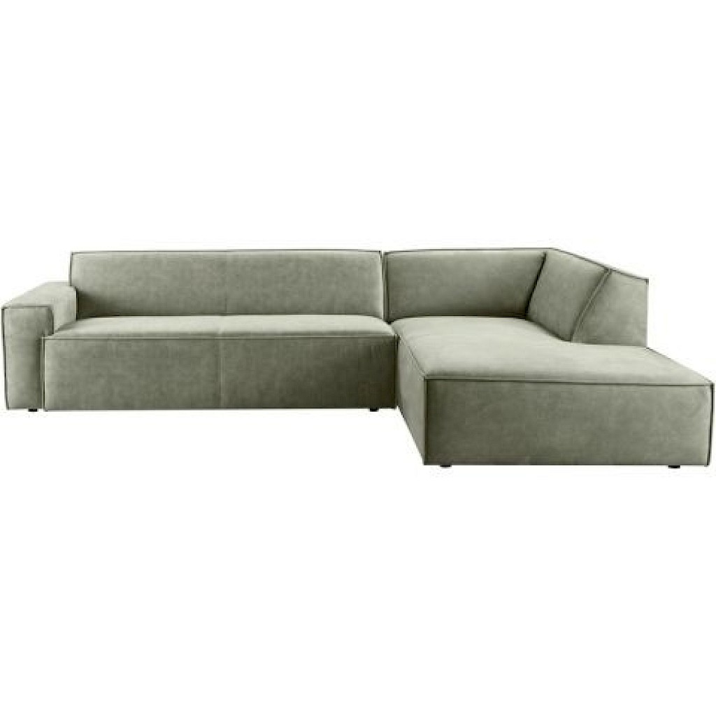 3 zits arm links + hoek met eiland L190 breed rechts uitgevoerd in stof adore 214-herb en microleder bull 206-thyme. Kunststof poten zwart 4 cm. Prijs inclusief hoofdsteun