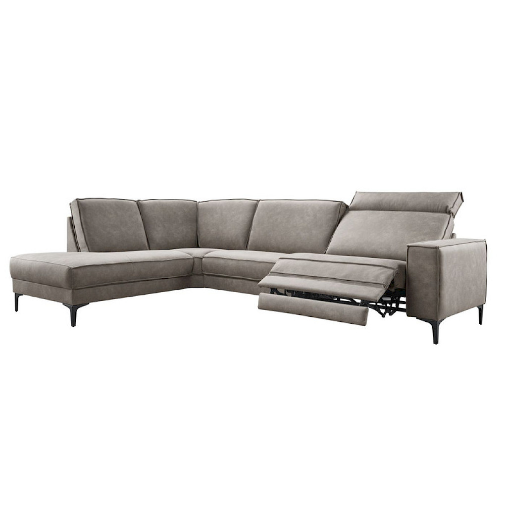 Donkerbruine hoekbank links Barrio met elektrische relaxfunctie