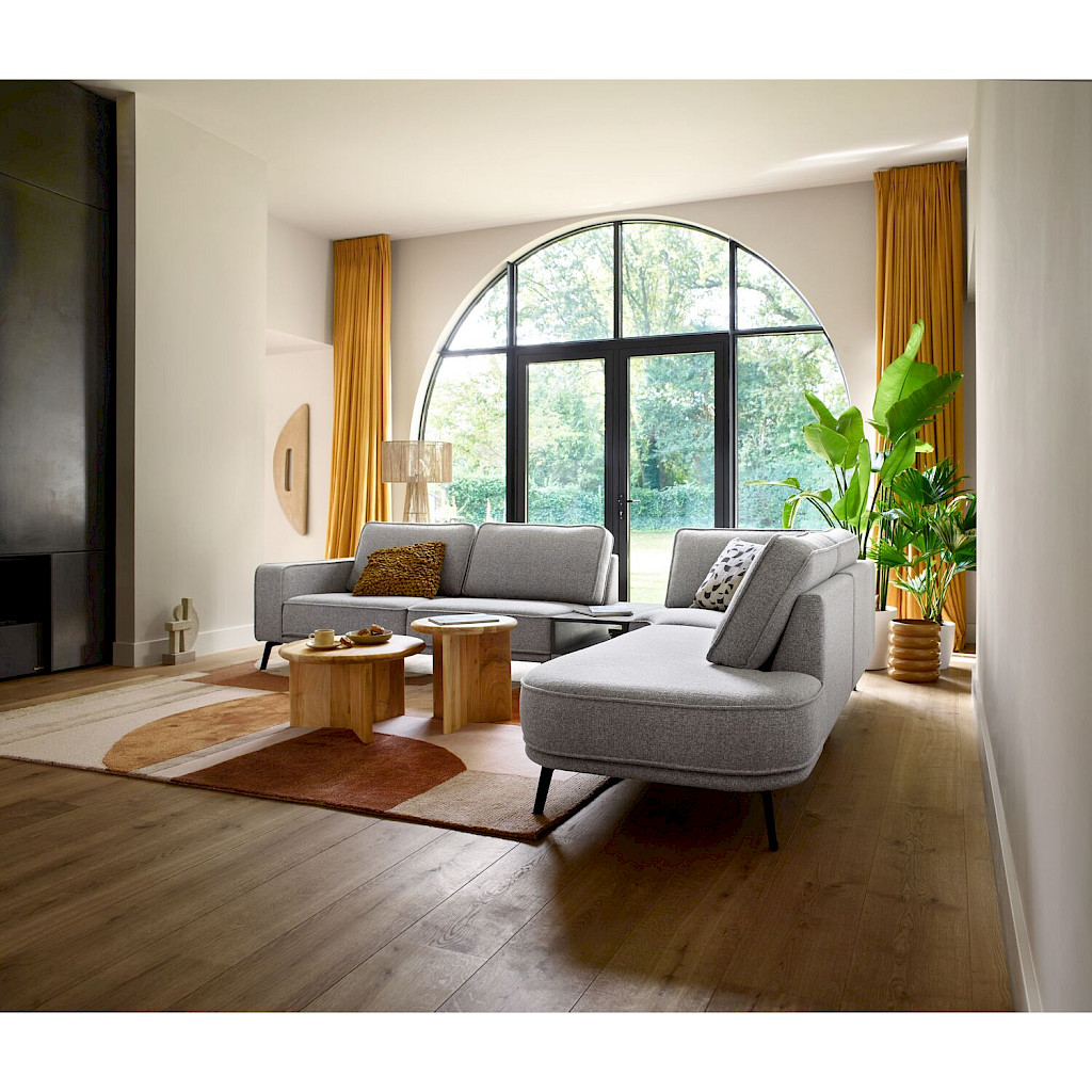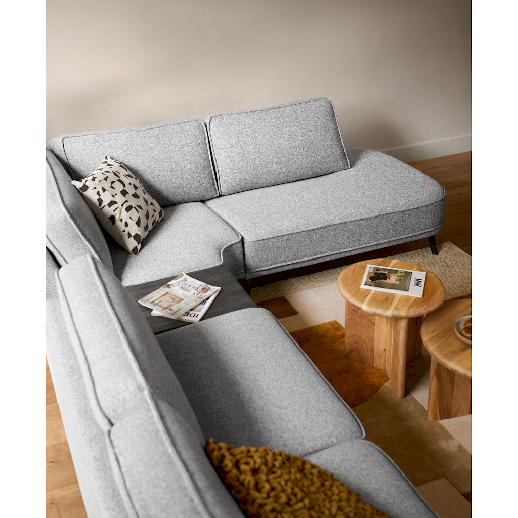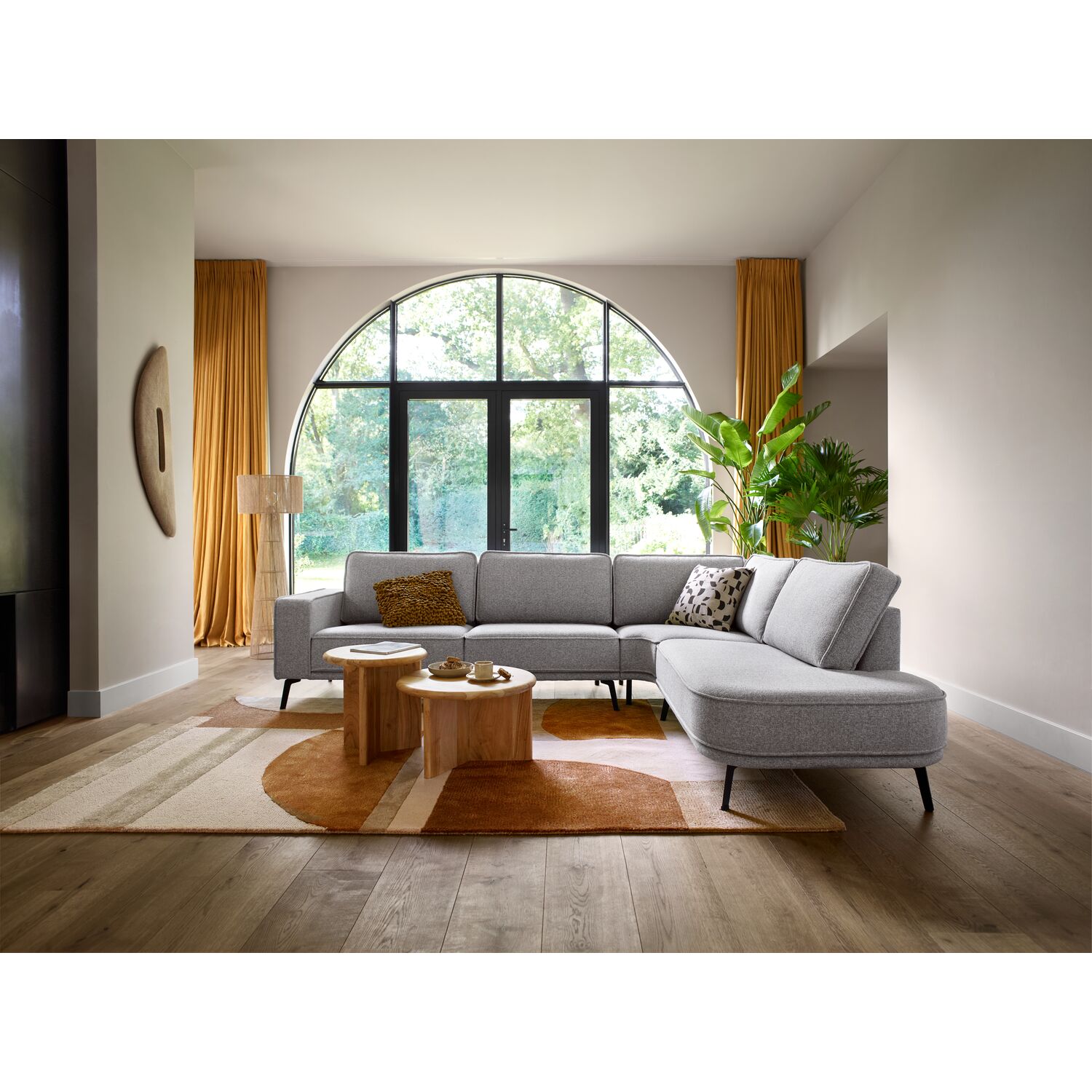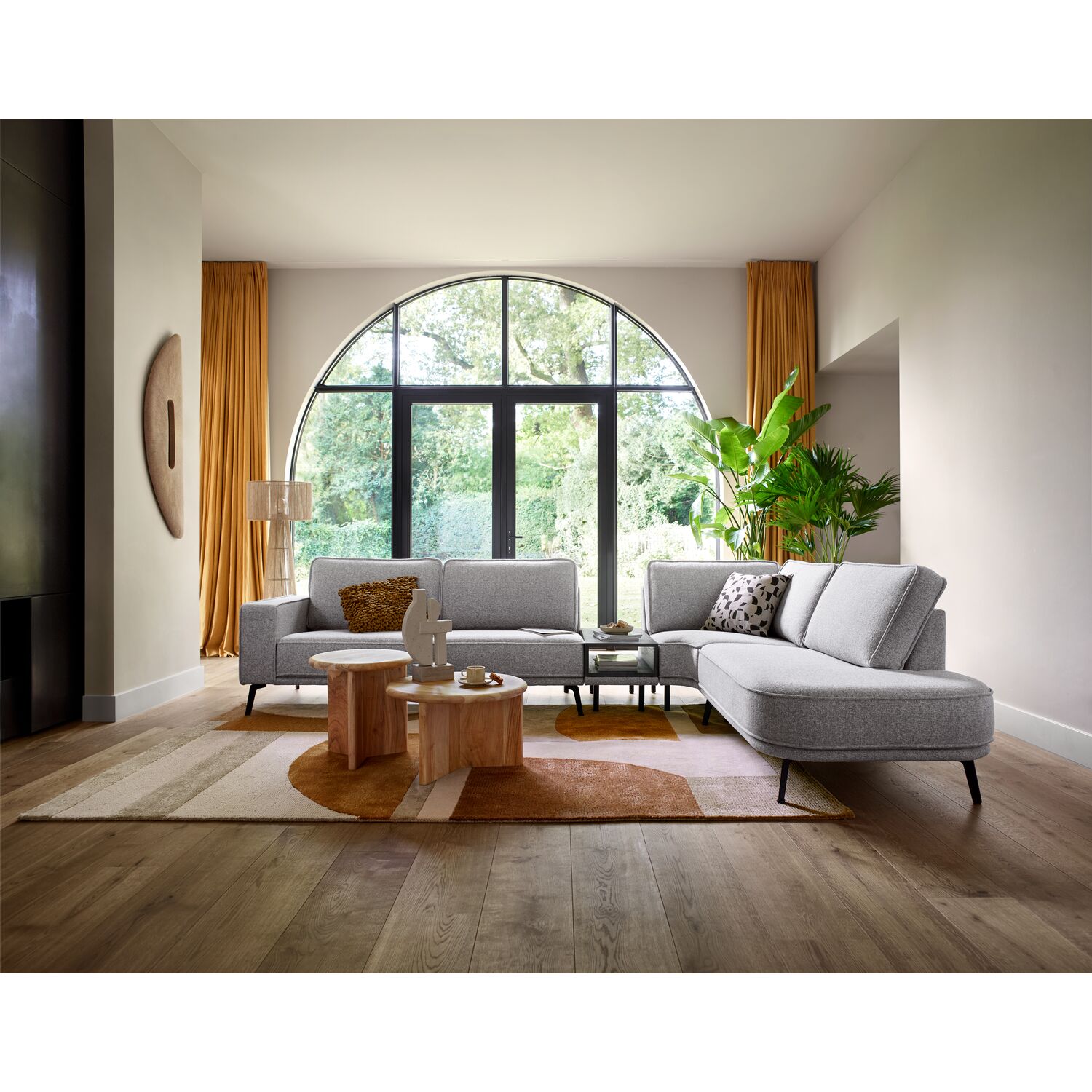 Bij hoekbank Brisana zijn de mogelijkheden eindeloos! De ronde vormen, zwart metalen poten en de grijze grof geweven stof geven de bank een elegante en tijdloze uitstraling. Doordat Brisana beschikt over losse elementen die aan de zijkanten doorgestoffeerd zijn, kunnen alle elementen vrijstaand in de ruimte geplaatst worden.