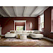 Longchair rond arm links + 2,5 zits zonder armen + hoek met eiland rond rechts uitgevoerd in stof coco 196-shell met arm type A, Engelse stiknaad en zwarte metalen poten, type MF5 (13 cm).