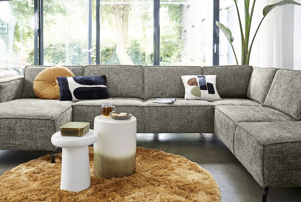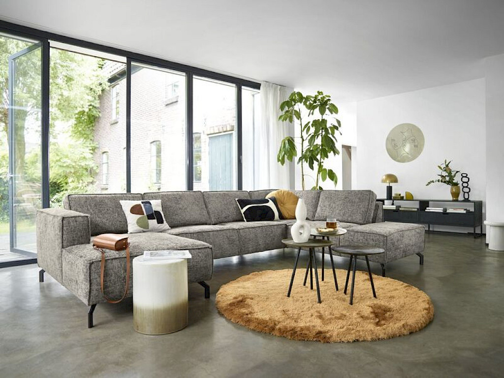 Hoekbank Hetara is in vele uitvoeringen verkrijgbaar. Denk hierbij aan een fauteuil, 3 zitsbank, 2 zitsbank of een geheel andere hoekopstelling dan getoond. Tevens is er een uitgebreide keuze in stof- en ledersoorten om de bank geheel naar wens samen te stellen. De bank is voorzien van zwarte metalen poten en dit geeft de bank een stoere afwerking.