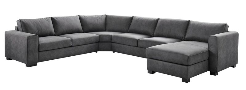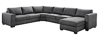 2 zits arm links (arm A1) + trapezehoek + 2 zits zonder armen + chaise longue arm rechts (arm B2), uitgevoerd in stof python 67-antraciet, polyetherschuim met een toplaag van  HR-koudschuim in de zitting, mix van polyetherschuim- en siliconenvlokken in de rug met zwarte houten poten, type HF1 (6 cm).