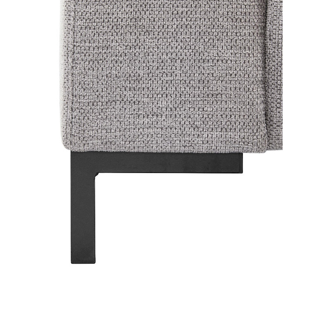 Hoek met eiland links + 2,5 zits arm rechts uitgevoerd in stof mito 40-ash grey met arm B, HR-koudschuim in de zitting, polyetherschuim in de rug en zwarte metalen poten, type MF1 (12 cm).