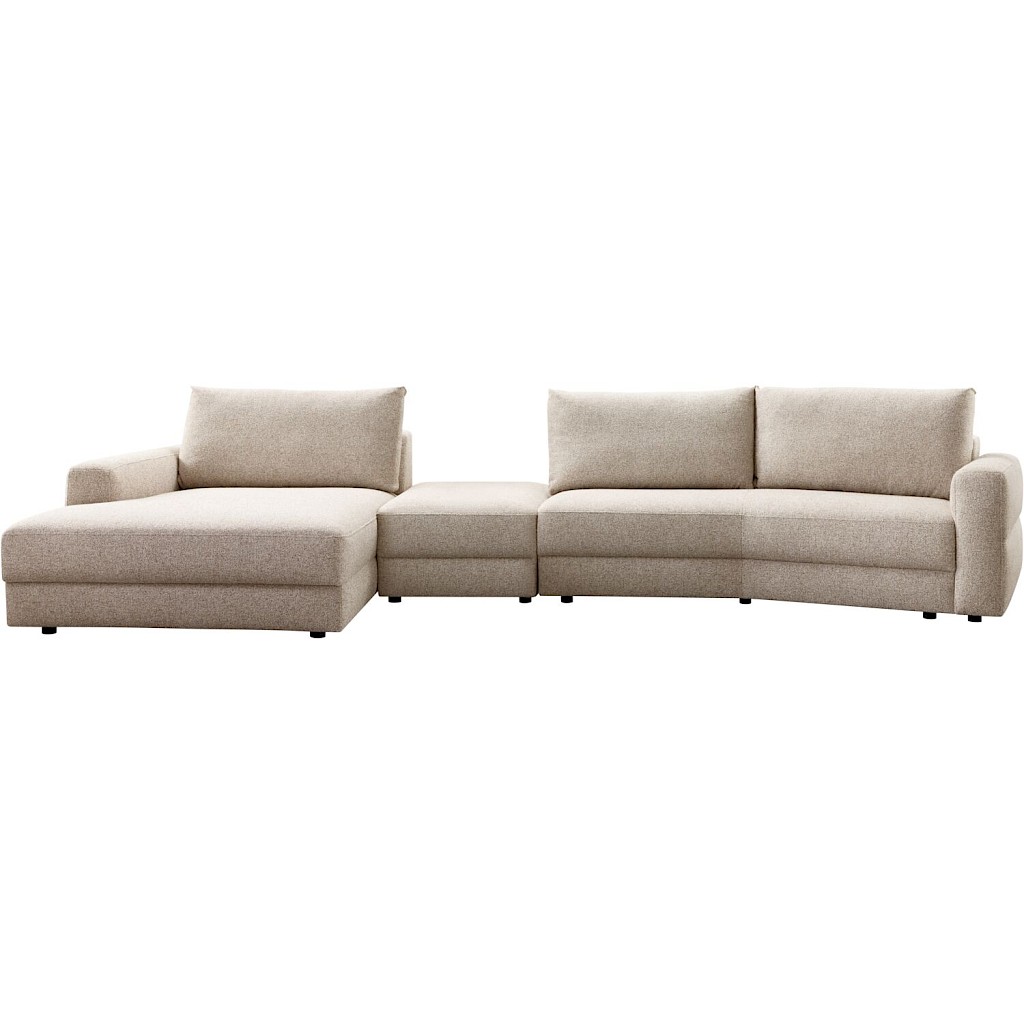 De getoonde uitvoering heeft als opvallende eyecatcher een schuin element. Liever een strakkere opstelling? Het schuine element is ook verkrijgbaar in een rechte uitvoering. Dankzij de volledig gestoffeerde zijkanten zijn de elementen ook los in de ruimte te plaatsen. Perfect als je regelmatig van opstelling wilt veranderen. Als optie kan je ook een hocker bijbestellen.