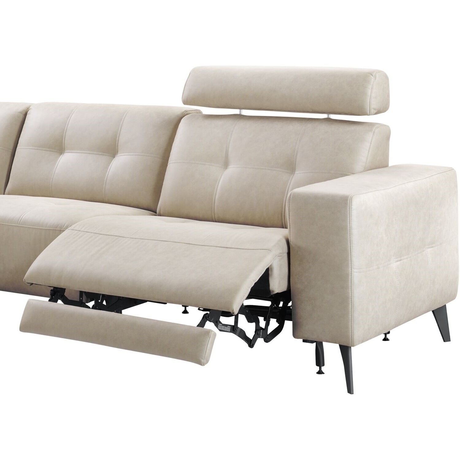Hoekbank Piorino in grijsbeige microvezel met relaxfunctie en verfijnde stiksels