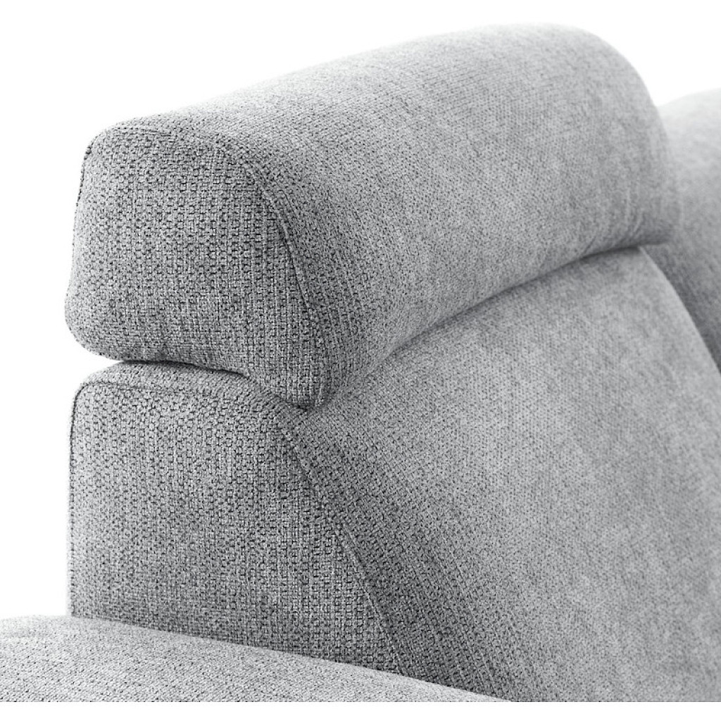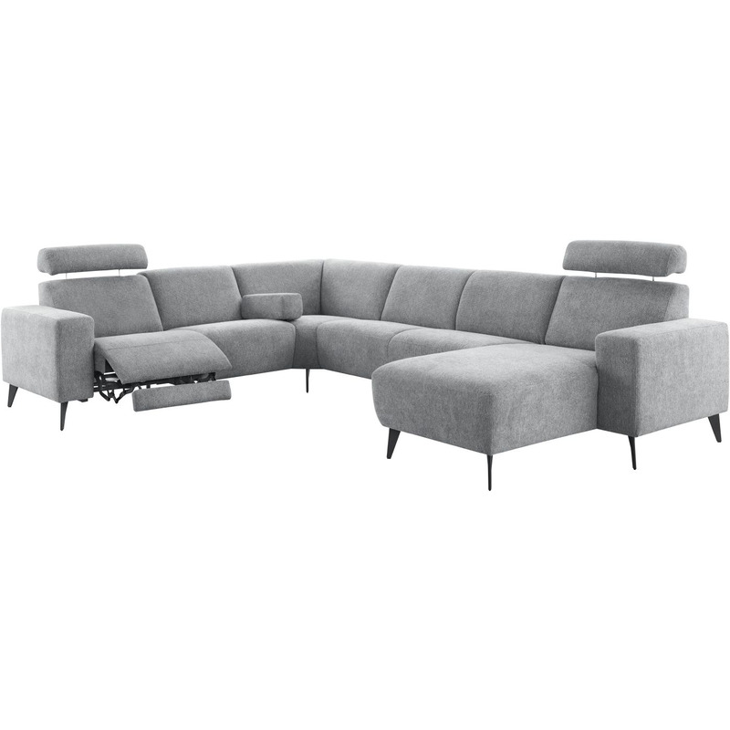 1,5 zits arm links (70) (1x relax incl. hoofdsteun) + 1,5 zits zonder armen (70) + grote hoek + 2,5 zits zonder armen + chaise longue smal arm rechts + hoofdsteun in stof mito 87-slate met polyetherschuim met een bovenlaag van HR-koudschuim in de zitting, 2 lagen HR-koudschuim in de rug en zwarte metalen poten 2O1K.