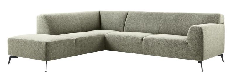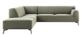 Hoek met eiland links + 2,5 zits arm rechts uitgevoerd in stof alpine 206-thyme met HR-schuim i.c.m. visco-schuim in de zitting en zwarte metalen poten, type MF1 (hoogte 15 cm).