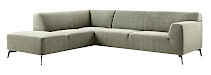 Hoek met eiland links + 2,5 zits arm rechts uitgevoerd in stof alpine 206-thyme met zwarte metalen poten, type MF1 (hoogte 15 cm).