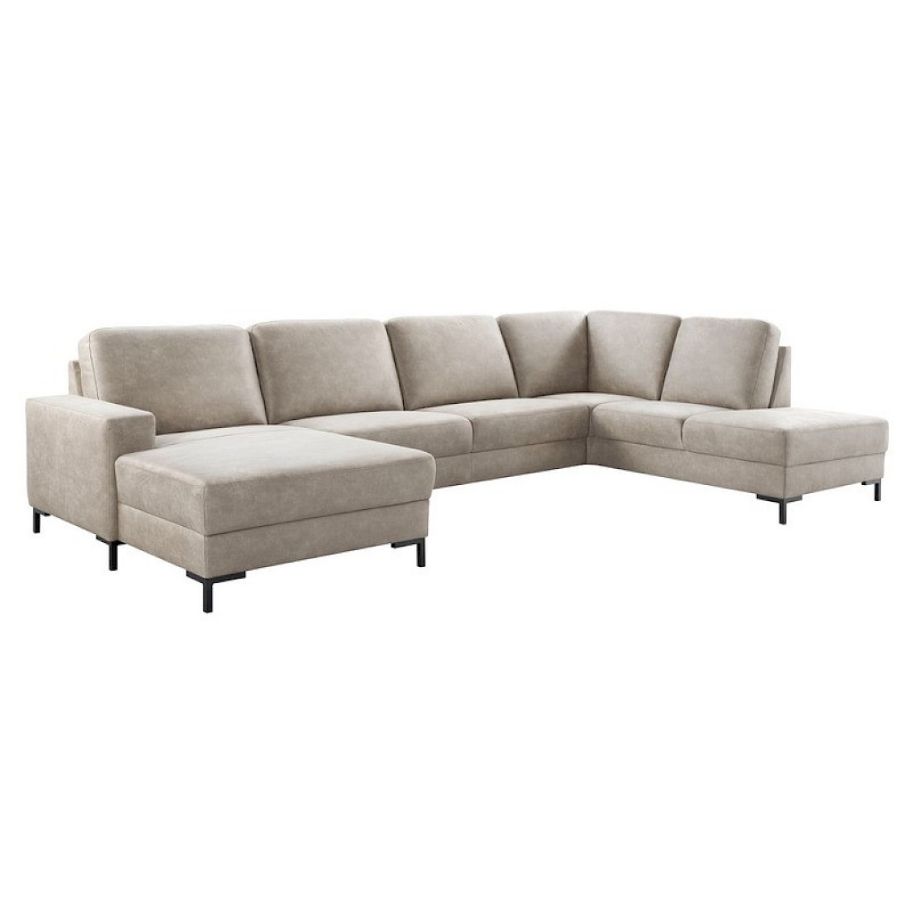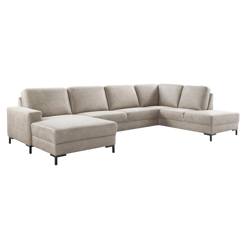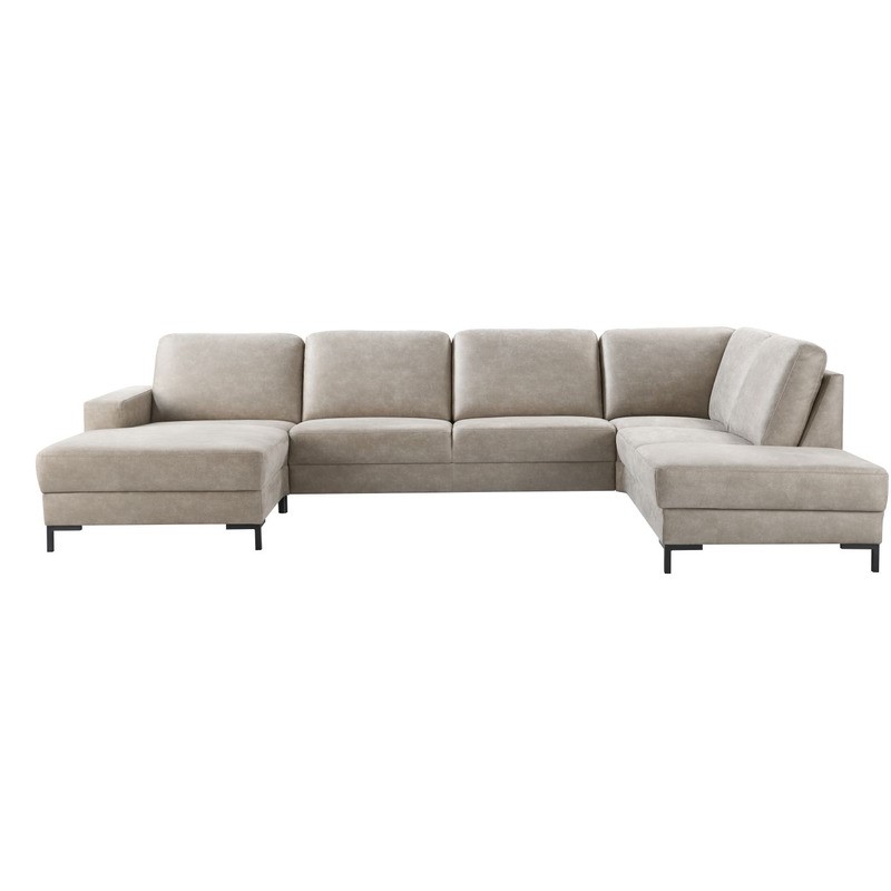 Longchair arm B links + 2,5 zits zonder armen + hoek met eiland rechts, uitgevoerd in microleder bull 84-clay met bonellvering in de zitting en zwart metalen poten type MF1, hoogte 12 cm.