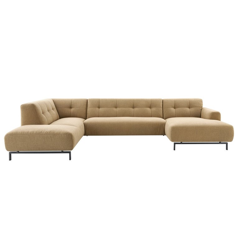 Hoekbank Moritia is een royale bank waar je heerlijk in kunt relaxen door de ruime elementen. Door het opvallende capiton stiksel op de rug is model Moritia een blikvanger in je woonkamer. De zwarte metalen poten geven de bank een moderne uitstraling.