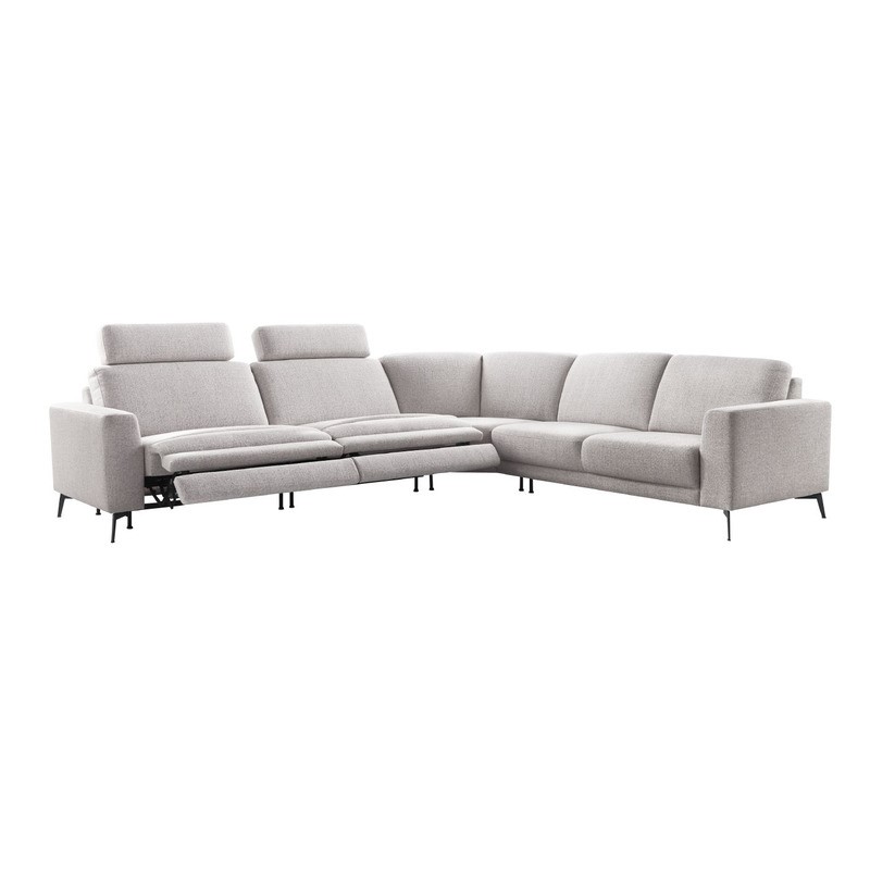 Ontspannen in stijl doe je met onze hoekbank Moscato met elektrische relaxfunctie! Deze bank is niet alleen een elegante toevoeging aan je woonkamer, maar biedt ook het ultieme comfort voor jou en je gasten. De bank is gestoffeerd in een zachte geweven stof die gemêleerd is met lichtgrijze en beige draden. Dit geeft de bank een eigentijdse uitstraling die perfect past bij diverse interieurstijlen.