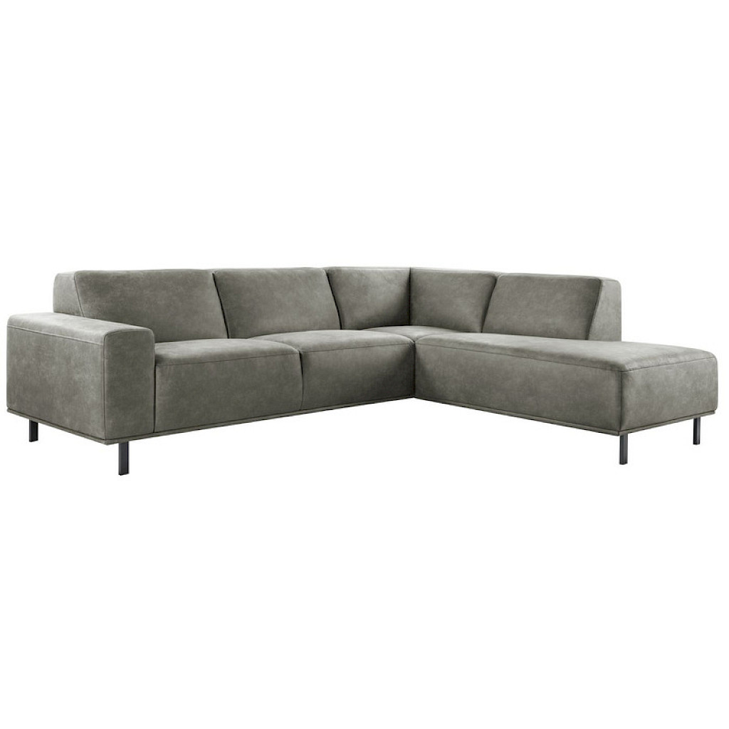 De hoekbank Pantini is een prachtig voorbeeld waarin stijl en comfort samensmelten. Stijl in de vorm van de dunne "plint" in combinatie met de volle zitting en rugleuning en de zwarte metalen designpoten. De bank is bekleed met een donkergrijs microleder. Dit is zeer sterk en voelt zacht aan. Microleder bestaat uit een onderlaag van leervezels en een toplaag van microvezelstof met een geschuurd effect. In combinatie met de 26 cm brede armleuning geeft dit de bank een stoere uitstraling.