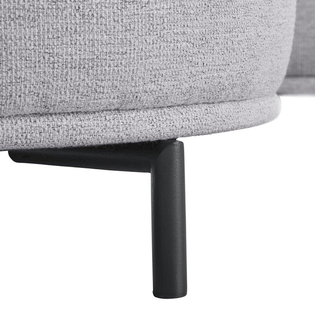 Longchair rond links + 3 zits zonder armen + hoek met eiland rond rechts in stof leaf 40-ashgrey met polyetherschuim in de zitting en de rug en zwarte metalen poten, type MF1 (12 cm).