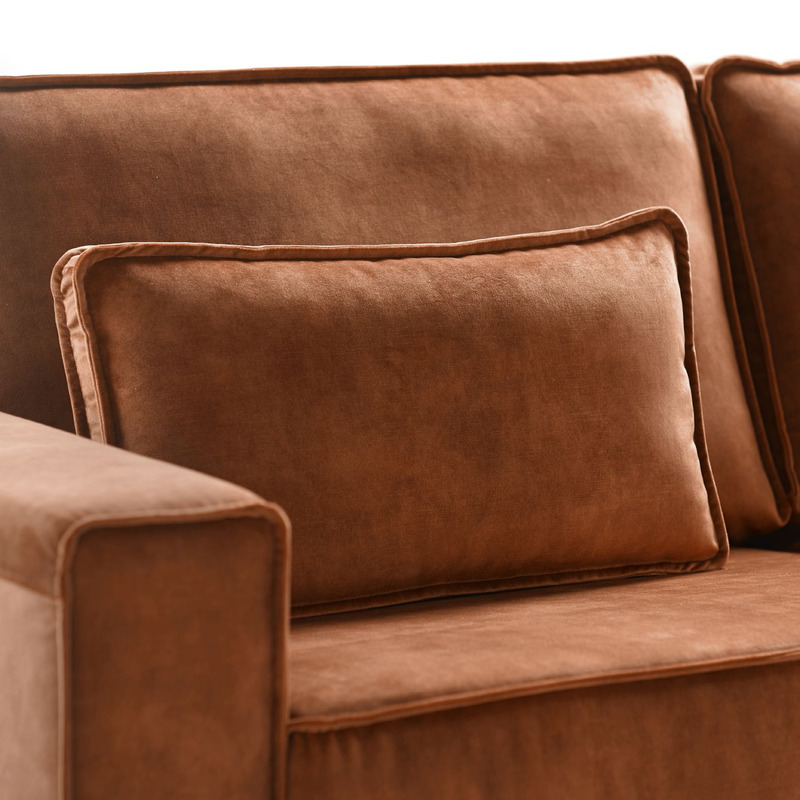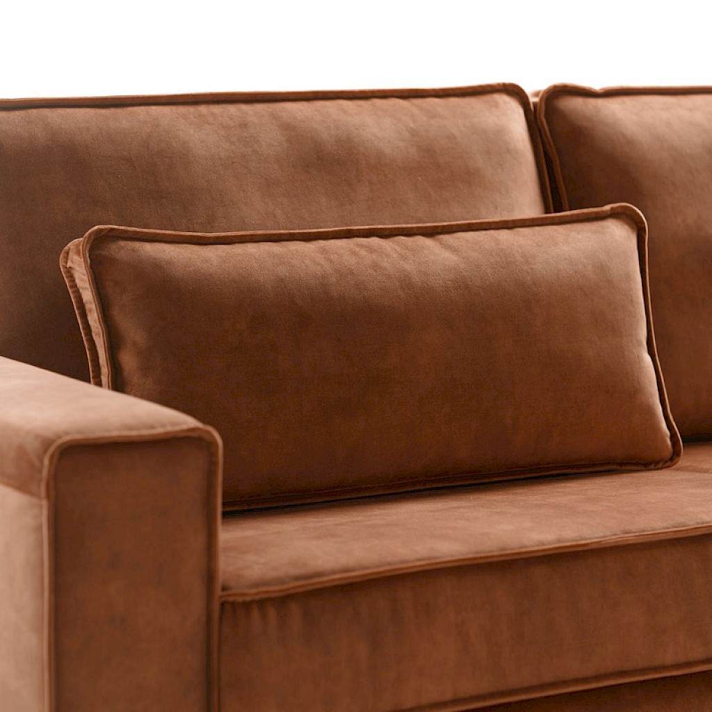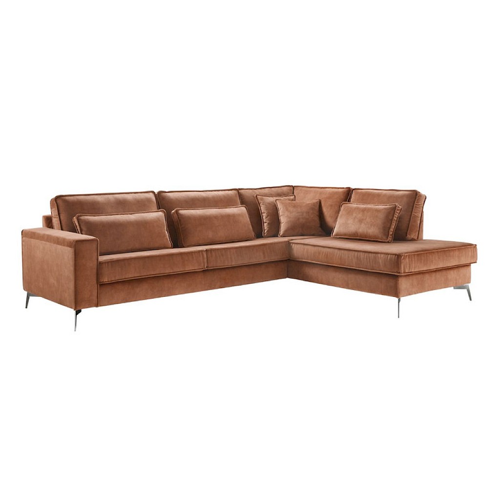Tijdloze hoekbank in een luxe, bruine velvetstof