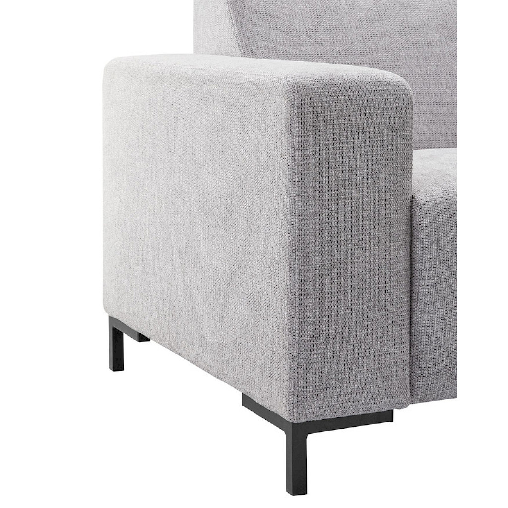De bank is bekleed met een grijze gemêleerde weefstof. Deze licht meerkleurige kwaliteit heeft een wat grovere structuur, maar wel een erg zachte touch. De zwart metalen poten maken deze moderne bank helemaal af.