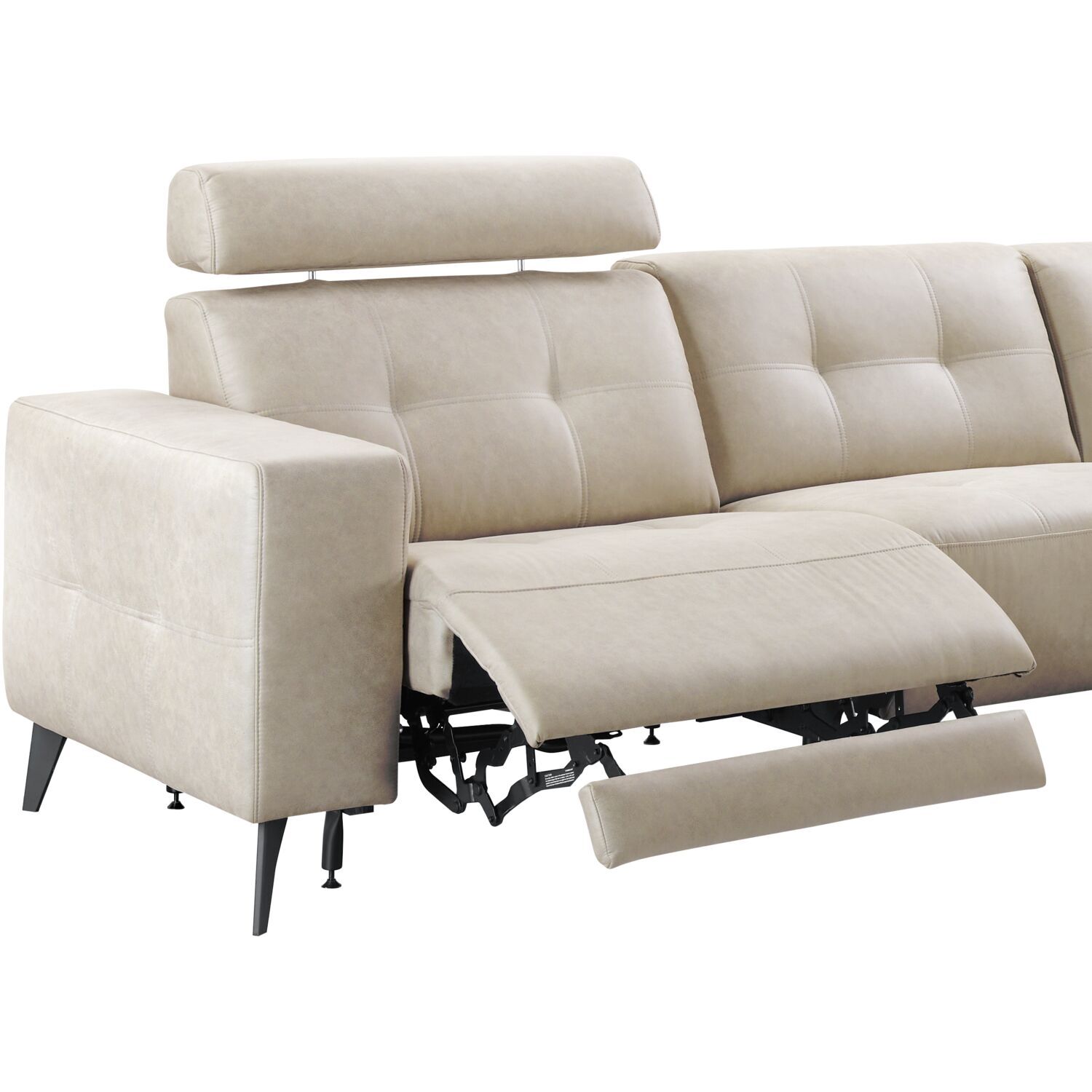 Met de elektrische relaxfunctie en hoofdsteun stel je eenvoudig de rugleuning en voetensteun in voor optimaal comfort. De bediening gaat via tiptoetsen op het zitkussen naast de armleuning. De relaxfunctie is geschikt voor een gewicht tot 120 kg en heeft 25 cm ruimte achter de bank nodig voor het beste resultaat.