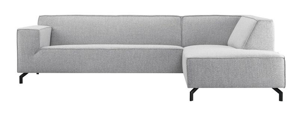 Model Terzo is met zijn strakke vormgeving en moderne zwarte metalen designpoten en echte eyecatcher. Zowel de zitting als de rugleuning zijn vast gestoffeerd en door de gesloten vlindernaad wordt de strakke vormgeving en de kubistische look extra geaccentueerd. Het afwerkingsniveau en het comfort zijn van zeer hoge kwaliteit, en de beste materialen zijn gebruikt. De hoekbank is gestoffeerd in de prachtige, grof geweven stof Oasis. Dit is een weefstof met verschillende draaddiktes, waardoor een licht reliëf ontstaat. De kleur is een mix van grijze en off white garens. Ondanks de wat grovere weefstructuur voelt de stof erg zacht aan.