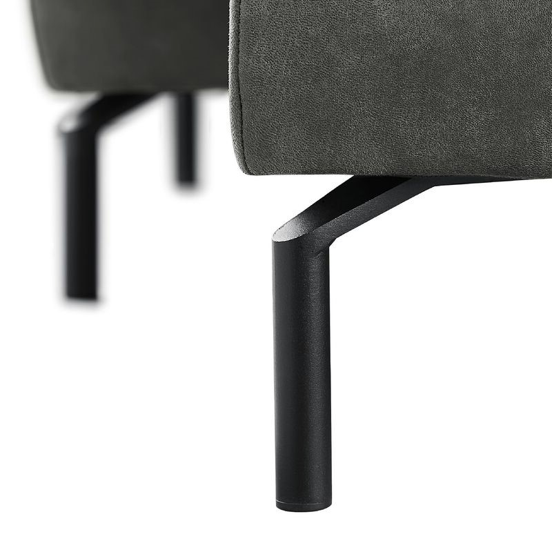 Longchair arm links + 2 zits zonder armen + hoekelement groot + 1 zits met eiland rechts uitgevoerd in microleder bull 67-antraciet met verstelbare arm A, polyetherschuim in de zitting, polyetherschuim in de rug en zwarte metalen poten, type MF3 (15 cm).