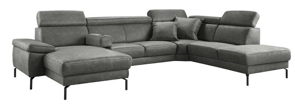 Hoekbank Tusari is een mooie, comfortabele en ruime hoekbank met vaste zit- en rugkussens. Door de eigentijdse belijning past deze hoekbank in veel verschillende interieurs en is eenvoudig te combineren bij allerlei woonstijlen zoals modern, traditioneel of lifestyle. De 32 cm brede verstelbare armleuning en de zwarte metalen poten geven de bank een stoere look. Deze U-vormige hoekbank is standaard voorzien van verstelbare hoofdsteunen en dat maakt deze bank heerlijk om in te relaxen en dat gewoon in je eigen woonkamer. Heb je liever de hoek andersom, dan is dit uiteraard ook mogelijk.