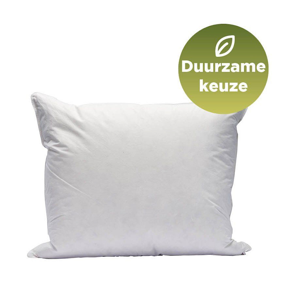 Dit is hoofdkussen Bloesem en bestaat uit 15% recycled dons en 85% recyclede veren, met een vulhoogte van ca. 120 mm. Bloesem heeft een afmeting van 60 x 70 cm en een tijk van 100% perkal katoen. Perkal katoen is een ademende stof en het voelt gladder en zachter aan door het hogere dradenaantal dan regulier katoen. Daarnaast is het makkelijk te onderhouden.