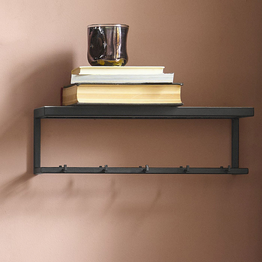 Kapstok in zwart staal en licht geborsteld eiken
