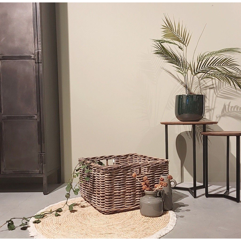 Vierkant, uitgevoerd in rotan in kleur grey, maat XL. OP=OP
