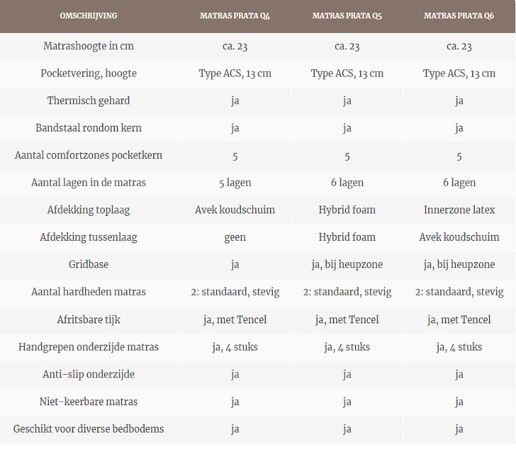 De Prata Q5 heeft een dubbele afdeklaag, bestaande uit een toplaag van Avek HybridFoam en een extra supportlaag van eveneens gezoneerd HybridFoam. Deze ademende lagen, gecombineerd met de gezoneerde ACS pocketvering, zorgen voor een heerlijk comfortabele ligging.