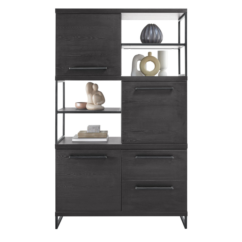 Deze wandkast is voorzien van 3 deuren, 2 laden en 4 open vakken. Deze kast is dus zowel ideaal om je leuke accessoires of boeken een plekje in het zicht te geven als om spullen in op te bergen. De kast is 120 cm breed en 200 cm hoog. De maten van de open vakken zijn h28,2 x b57,8 x d45 cm. De deuren en lades zijn voorzien van een soft-close systeem, hierdoor vallen deze automatisch zachtjes dicht. Achter de deuren vind je een vaste legplank. De kast is voorgemonteerd, je kunt dus meteen beginnen met inrichten. De opbergkast is uitstekend te combineren met de andere meubelen uit de Formia serie.