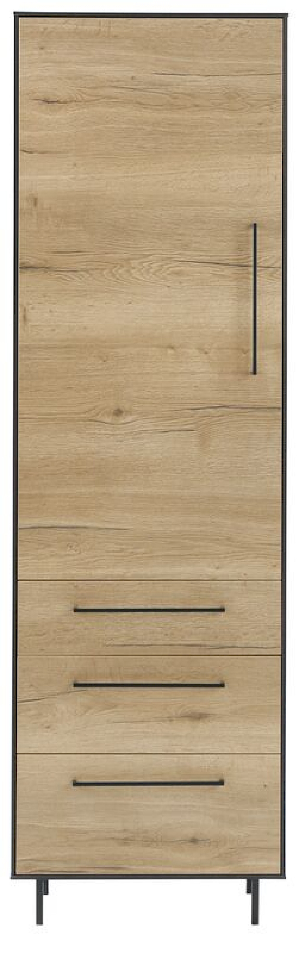Deze wandkast heeft 1 deur en 3 laden. Achter de deur zijn 2 legplanken waar je veel ruimte hebt om je spulletjes op te bergen.