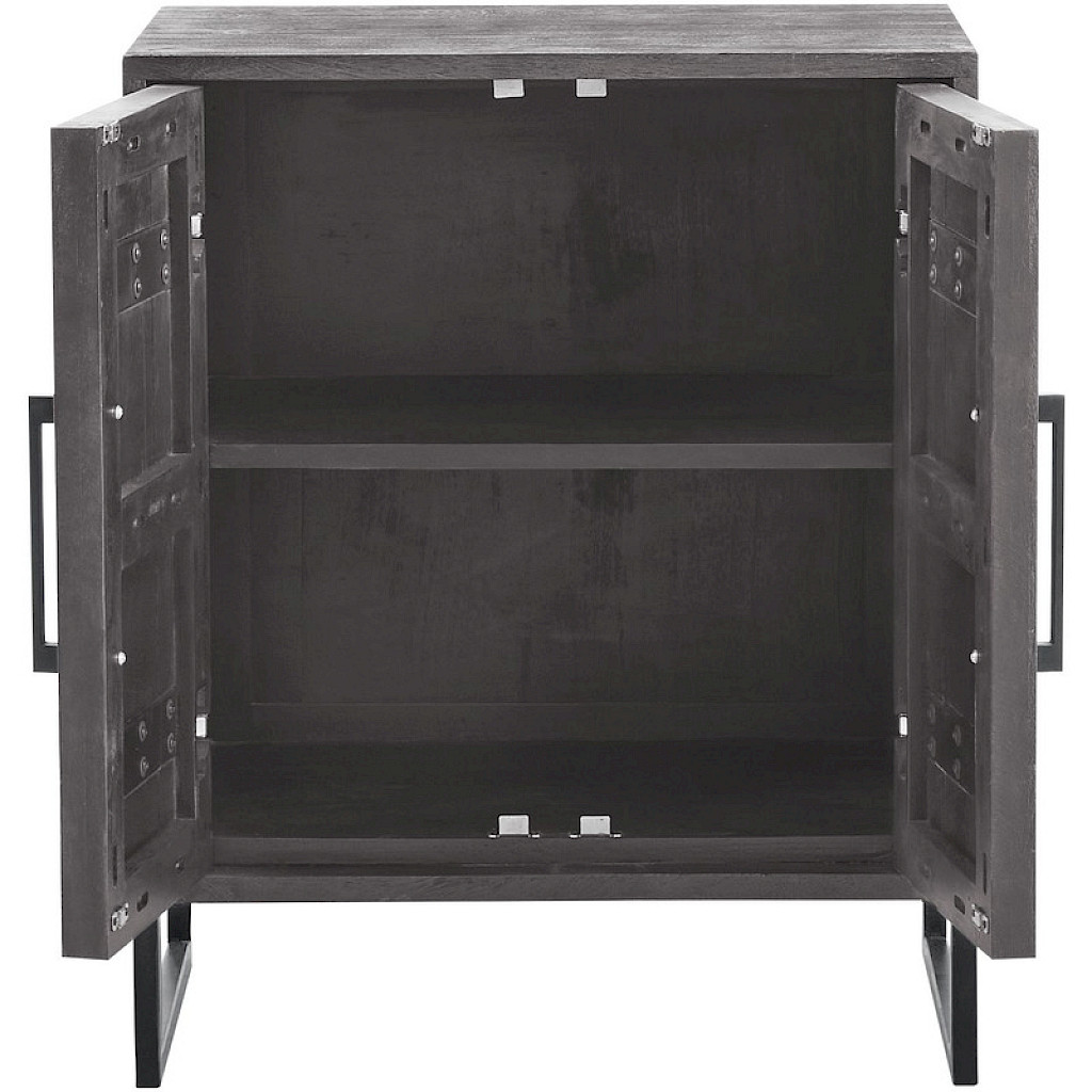 Transformeer jouw woonruimte met onze kast Piastra, vervaardigd uit zwart mangohout (gezandstraald) in perfecte harmonie met een elegant metalen frame. Het mangohout, bekend om zijn duurzaamheid en warme tinten, voegt een natuurlijk element toe aan je ruimte terwijl het metalen frame een eigentijdse uitstraling geeft. Door het mangohout zwart te kleuren voeg je een krachtig design element toe. De houtnerven en nuances maken elk meubel uniek en dragen bij aan een karaktervolle uitstraling.