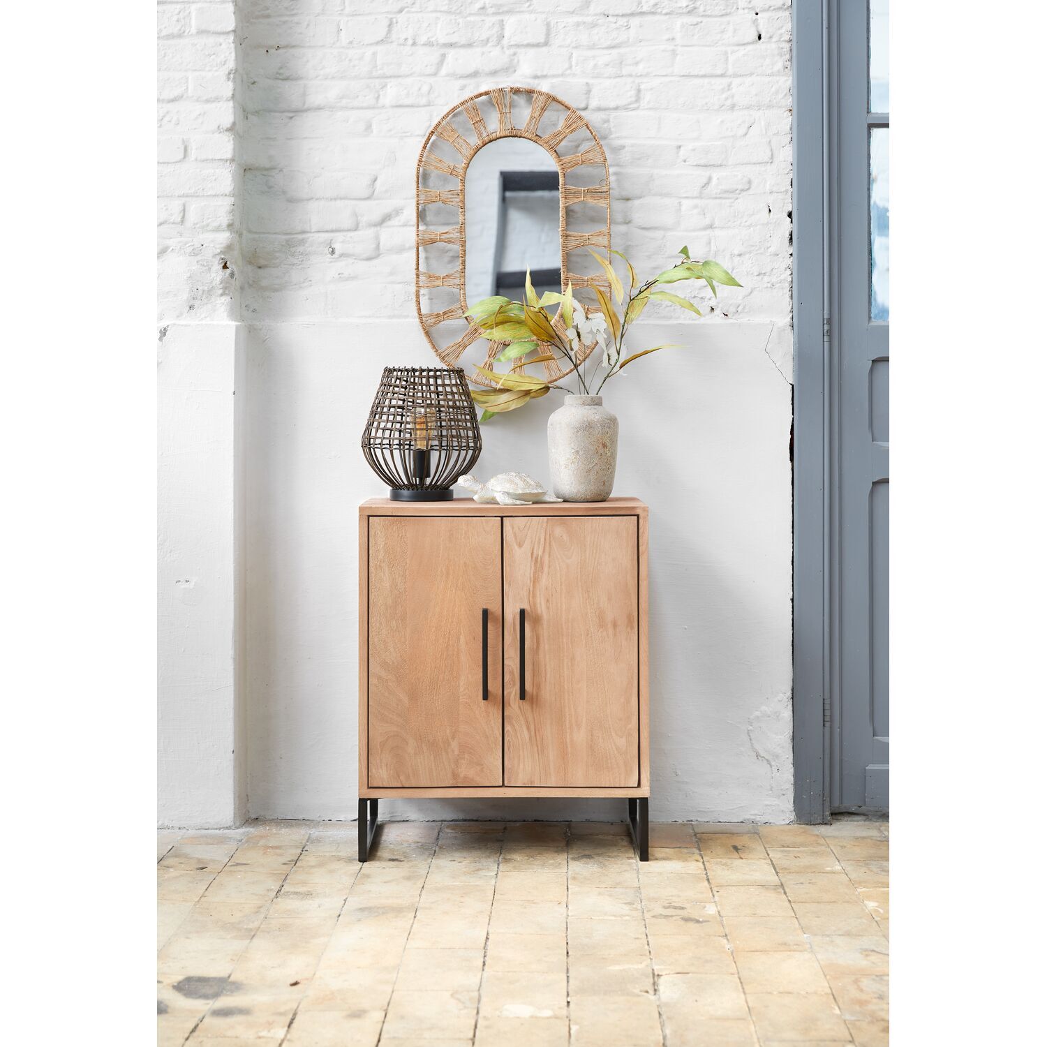 Transformeer jouw woonruimte met onze kast Piastra, vervaardigd uit mangohout (gezandstraald) in kleur naturel in perfecte harmonie met een elegant metalen frame. Het mangohout, bekend om zijn duurzaamheid en warme tinten, voegt een natuurlijk element toe aan je ruimte terwijl het metalen frame een eigentijdse uitstraling geeft. De houtnerven en nuances maken elk meubel uniek en dragen bij aan een karaktervolle uitstraling.