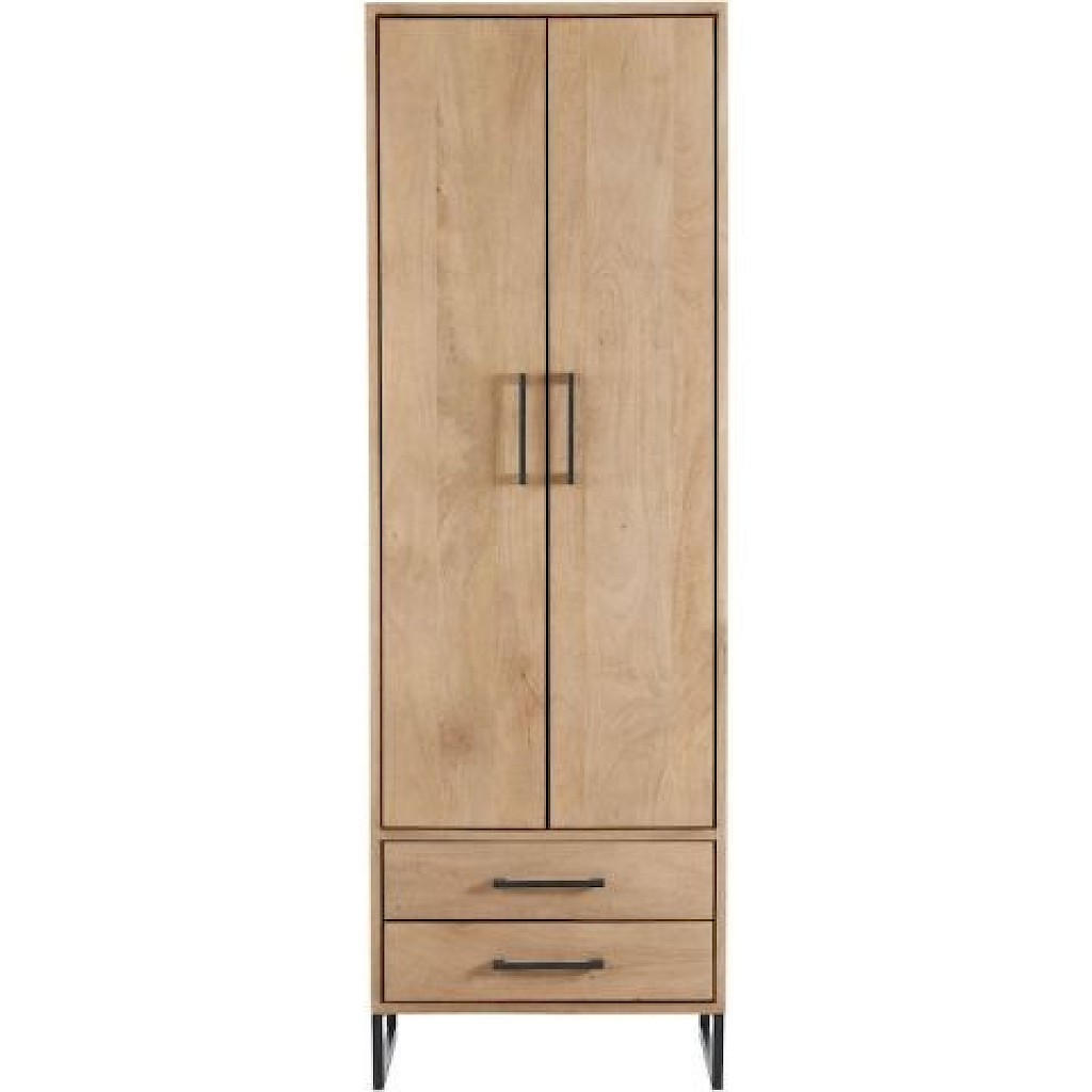 Uitgevoerd in gezandstraalt mangohout in de kleur deep black met een zwart metalen frame met 4 deuren, 4 laden en 2 open vakken. OP=OP