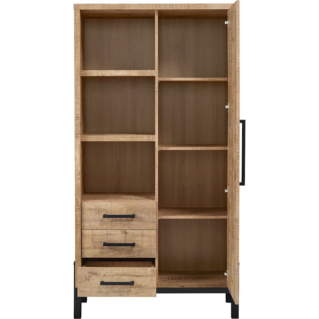 • Met 1 deur, 3 laden en 3 open vakken