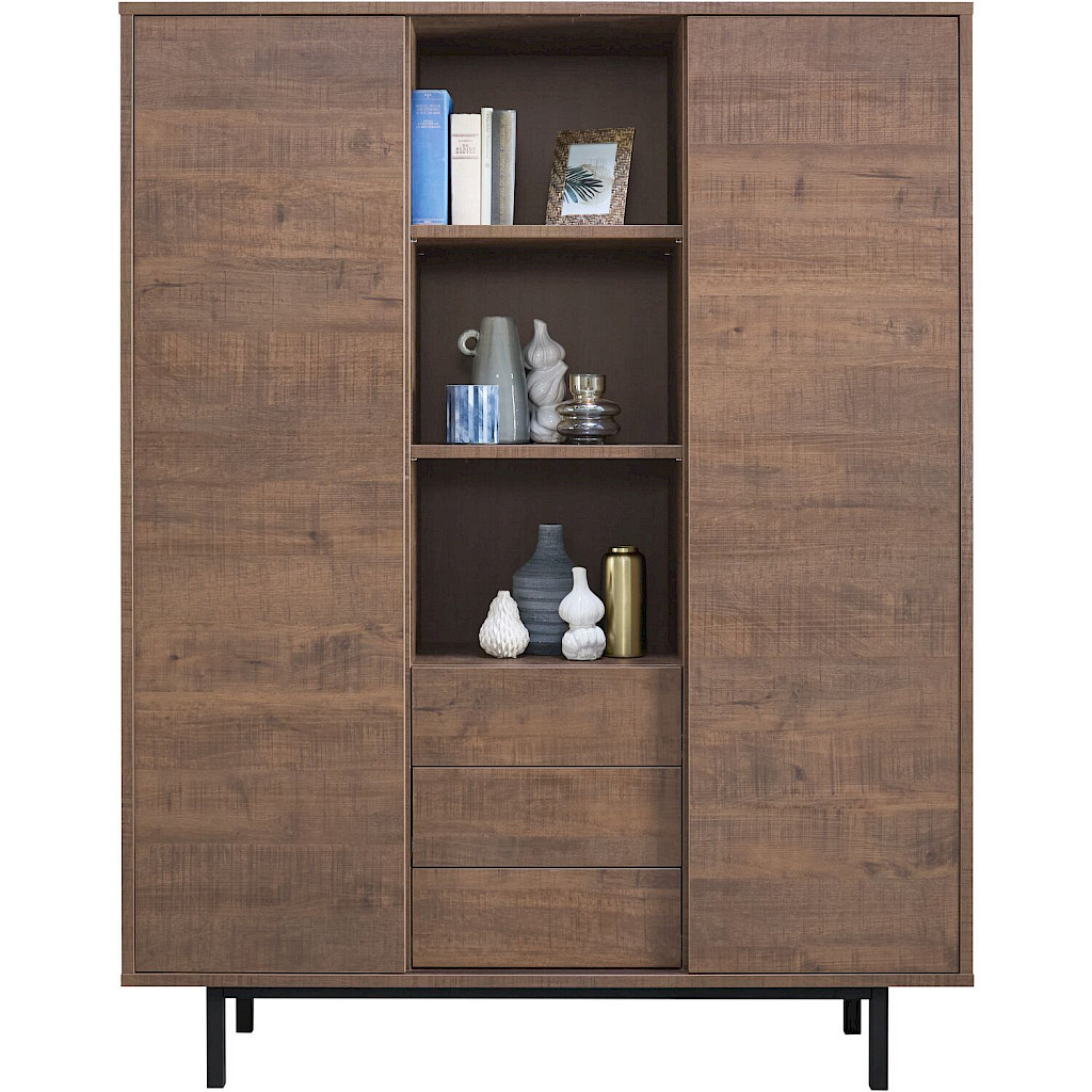 Breng charme en sfeer in je interieur met de opbergkast Spazzare. Dit stijlvolle meubel is voorzien van een melamine toplaag met een donkerbruine, mangohouten look. Hierdoor is de opbergkast kras-, slijt- en stootbestendig en geniet je tegelijkertijd van de uitstraling van echt hout.